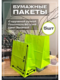 Крафтовый пакет с закругленными ручками салатовый 5 шт