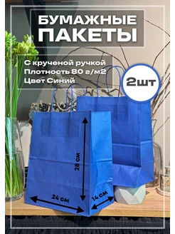 Крафтовый пакет с закругленными ручками синий 2 шт