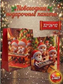 Пакет подарочный новогодний, набор 2 шт, 3D