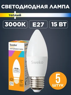 Лампочка e27 15Вт светодиодная 3000К (теплый свет) (5 шт)