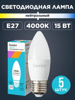 Лампочки светодионые Е14 15Вт 4000К нейтральный свет 5 штук