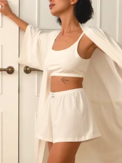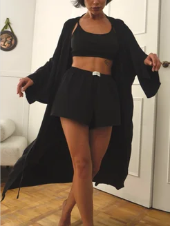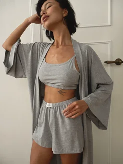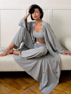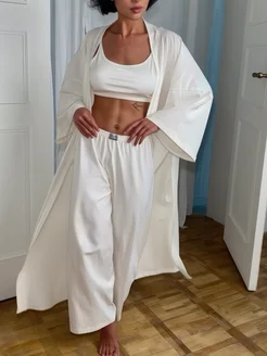 Пижамный костюм 3 в 1 Халат Кимоно Брюки Топ