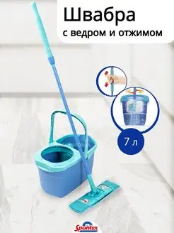 Швабра с отжимом и ведром для мытья пола + сменная насадка