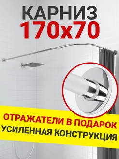 Карниз для ванной Угловой 170х70 см Усиленный Нержавеющий