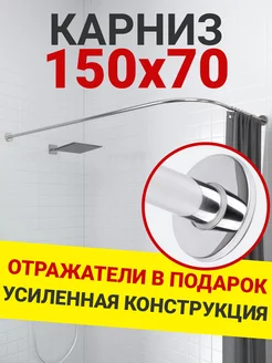 Карниз для ванной Угловой 150х70 см Усиленный Нержавеющий