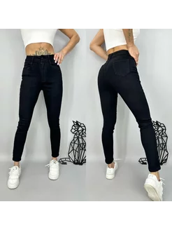 Джинсы черные с высокой посадкой зауженные