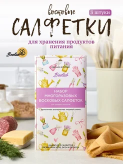 Восковые салфетки для продуктов многоразовые, 3 шт