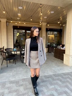 Твидовый костюм с юбкой трендовый модный принт гусиная лапка