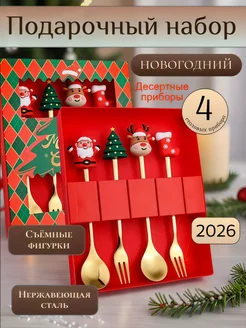 Новогодний подарочный набор золотых столовых приборов 4 шт