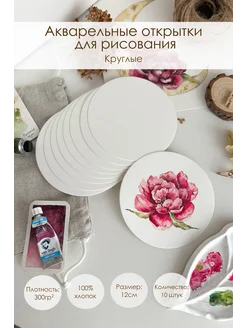Открытки круглые 12см, 100% хлопок, 300гр, 10шт