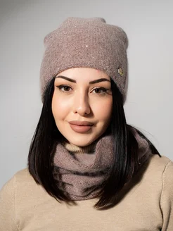 Шапка ангоровая со снудом теплая