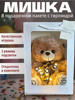 Пакет подарочный с гирляндой и плюшевым мишкой