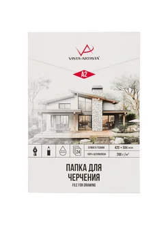 Бумага для черчения А2 в папке, 200 г м², 24 листов