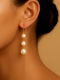 Серьги бижутерия с жемчугом протяжки висячие длинные