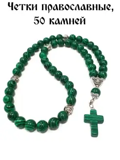 ЧЕТКИ ПРАВОСЛАВНЫЕ ИЗ МАЛАХИТА, 50 КАМНЕЙ