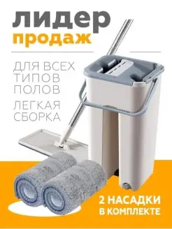 Швабра для мытья полов с отжимом и ведром влажная уборка