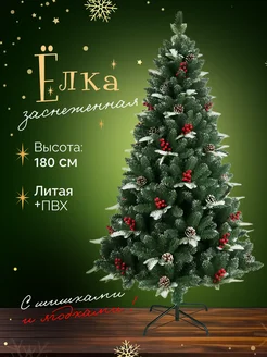 Елка искусственная новогодняя с ягодами и шишками 180 см