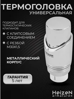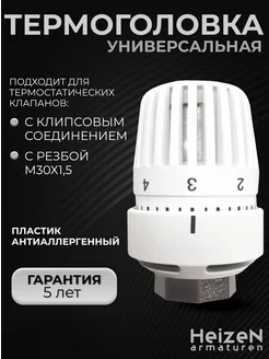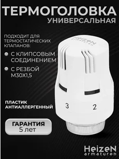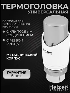 Термоголовка для радиатора отопления М30х1,5 белая - хром