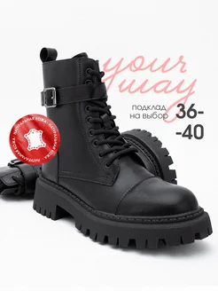 Ботинки демисезонные берцы на платформе натуральная кожа