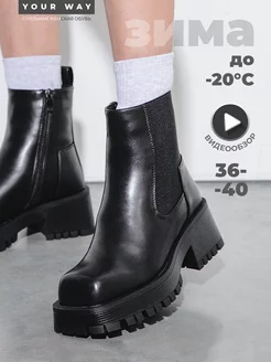 Ботинки зимние Челси на платформе с мехом