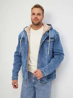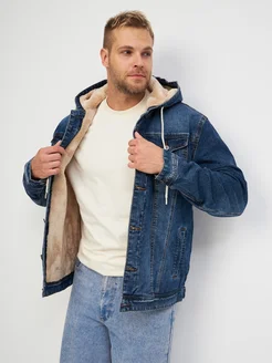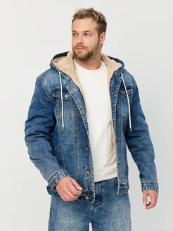 Джинсовая куртка утеплённая с капюшоном зимняя