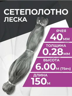 0,28мм-40мм Сетеполотно рыболовное 6,0м высотой