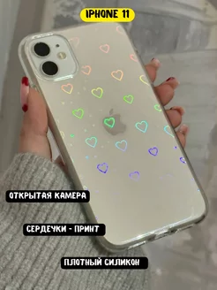 Чехол на iPhone 11 с принтом сердечками силиконовый