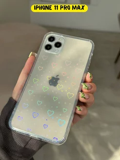 Чехол на iPhone 11 Pro Max прозрачный с принтом сердечками