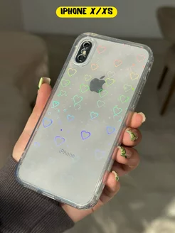 Чехол на iPhone X и XS прозрачный с сердечками силиконовый