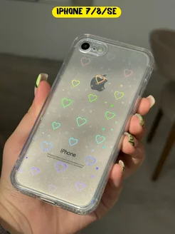 Чехол на iPhone 7 8 прозрачный с сердечками силиконовый