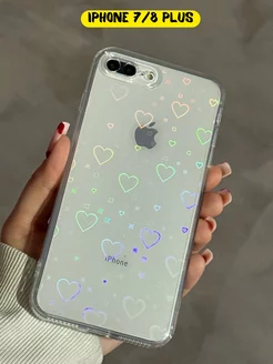 Чехол на iPhone 7 8 plus прозрачный с сердечками