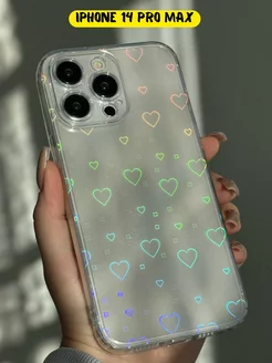 Чехол на iPhone 14 Pro Max прозрачный с принтом сердечками