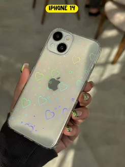 Чехол на iPhone 14 прозрачный с сердечками силиконовый