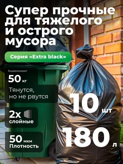 Мешки для бытового мусора, 180 л. 93х110, 10шт, пакеты 50мкм