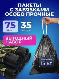 Пакеты для мусора с ручками, 35 л, мешки 75 штук