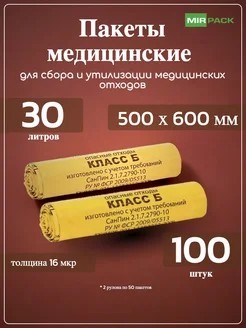 Пакет для медицинских отходов класса Б, 30 литров 100 штук