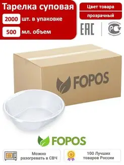 Одноразовые тарелки 500 мл - 2000 шт - прозрачные