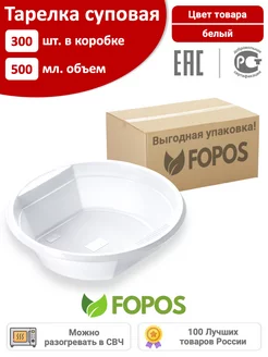 Одноразовые тарелки 500 мл - 300 шт - белые