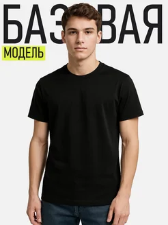 Футболка однотонная базовая черная, премиум, хлопок