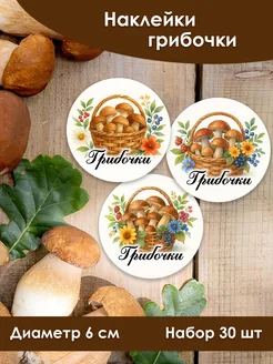 Наклейки "Грибочки", d 6 cм (30 шт)