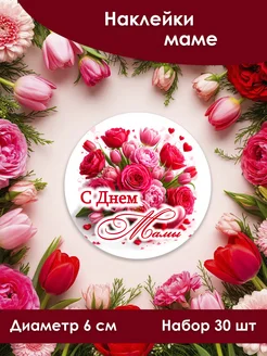 Наклейки "С Днем Мамы", d 6 см (30 шт)