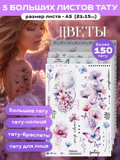 Переводные тату Временные тату из 5 листов Цветы