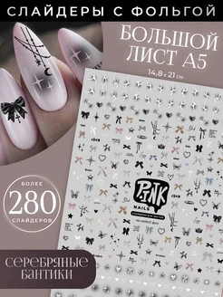 Слайдеры наклейки для ногтей с фольгой Бантики
