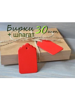 Бирки Теги, крафт, 4х7 см, 30 шт
