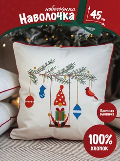 Новогодняя декоративная наволочка с вышивкой 45*45 гном