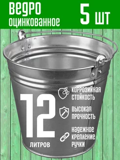 Ведро металлическое оцинкованное 12 литров 5 шт