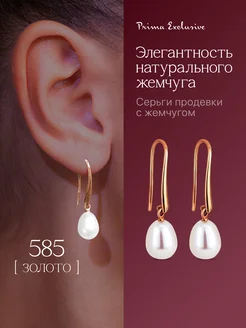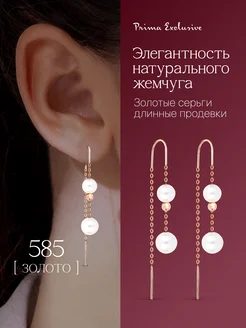Серьги протяжки с жемчугом золото 585 проба продевки