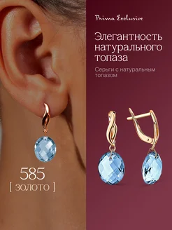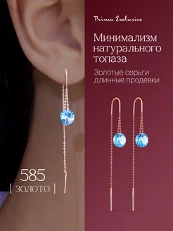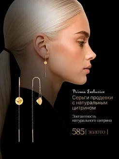 Серьги продёвки с цитрином длинные золотые 585 проба