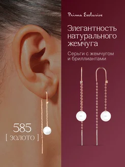 Серьги с бриллиантами и жемчугом золотые продевки 585