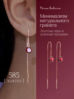 Серьги золотые 585 пробы с гранатом длинные продевки